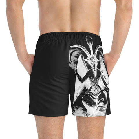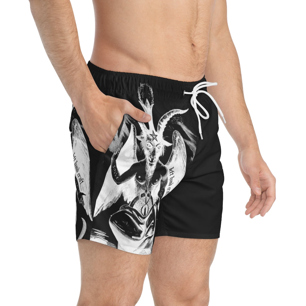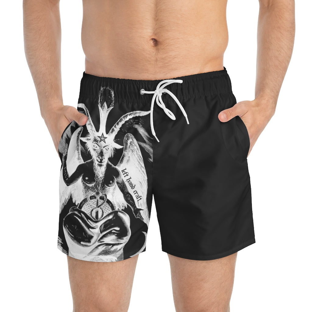Nothing can swoosh down the summer heat like a dive into the sea - or into the nearest pool. These Satanic swim trunks are here to help you take on summer with style.